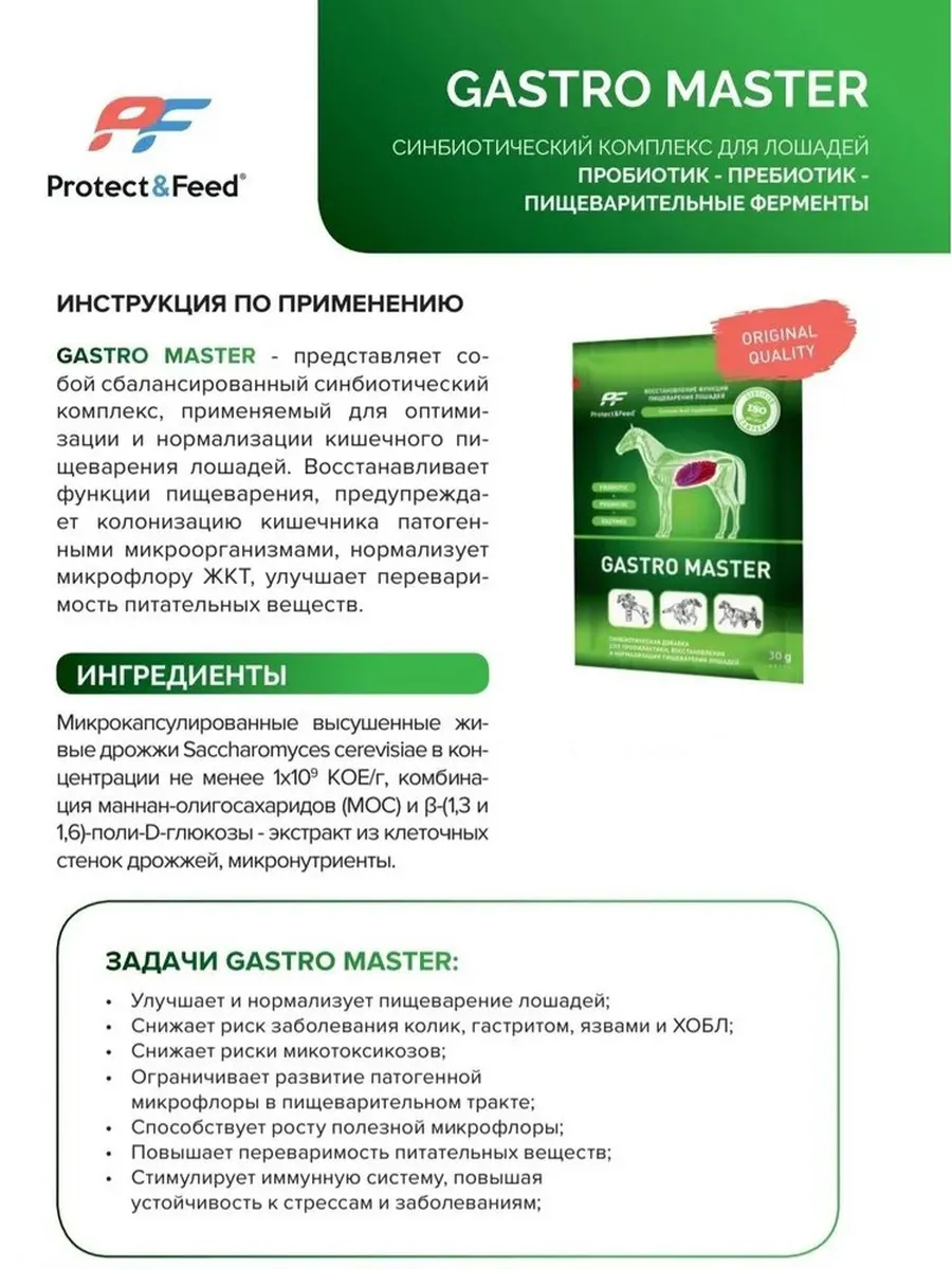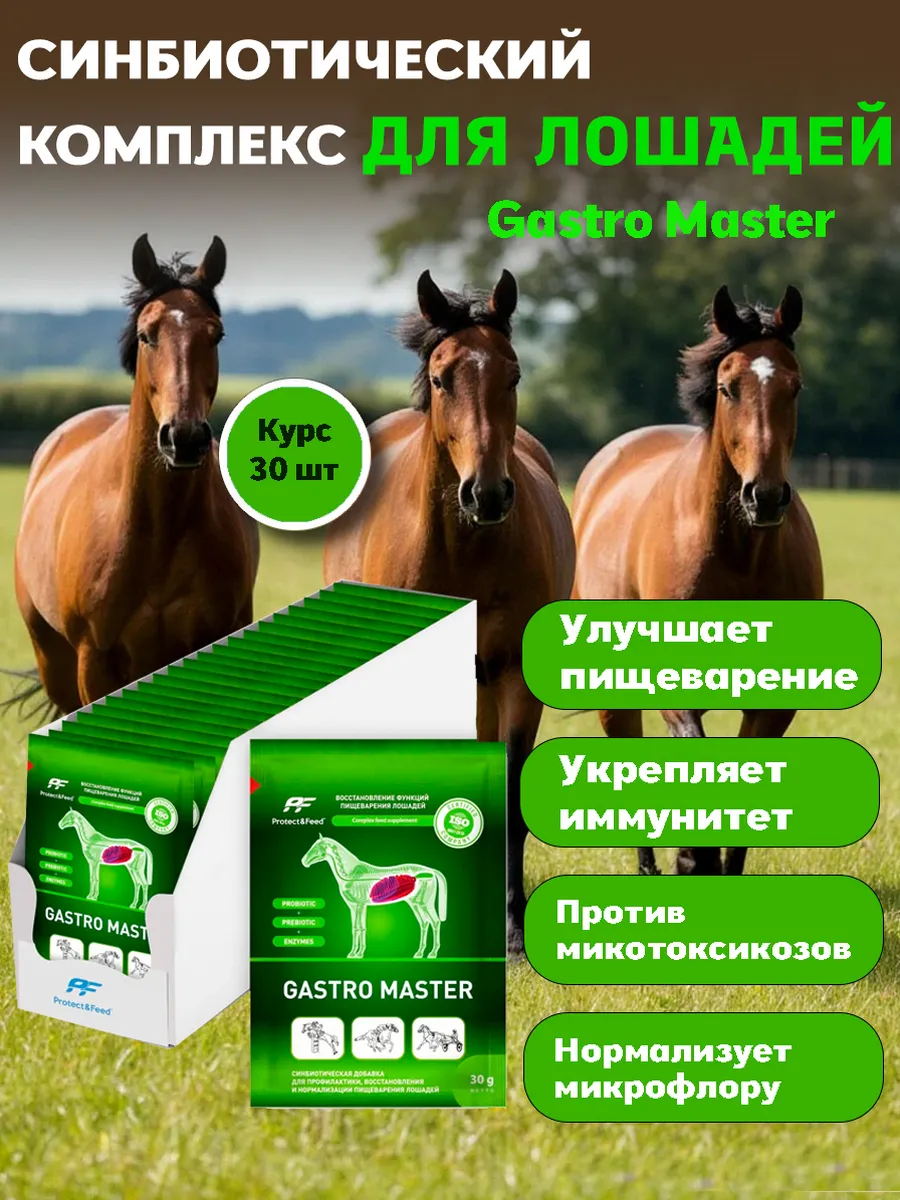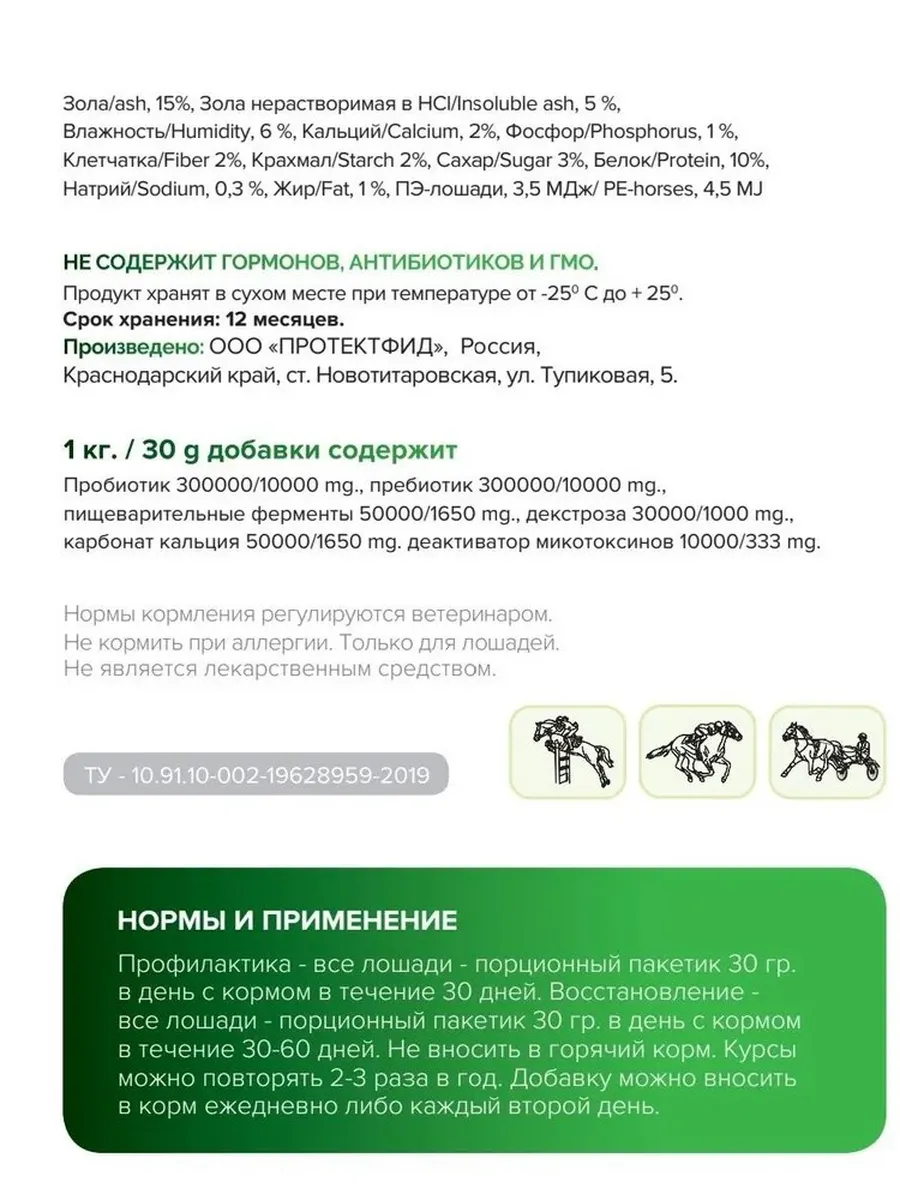 - Улучшает и нормализует пищеварение лошадей