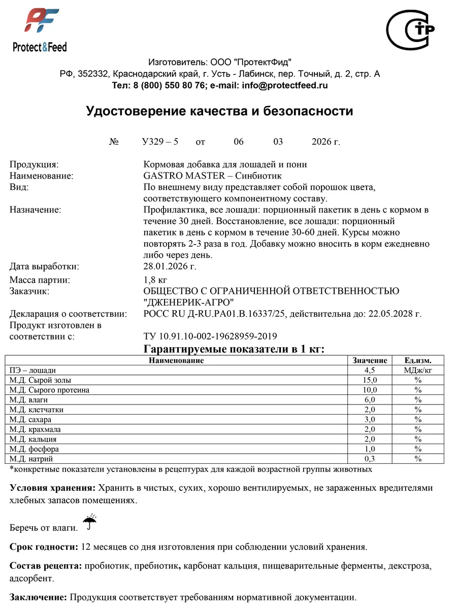 - Снижает риски микотоксикозов